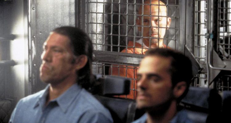 CON AIR, John Malkovich (back), 1997. ©Buena Vista PicturesFrame del giorno – Con Air (1997) di Simon West Redazione Glitch Luglio 12, 2021 – Se mi ammazzi chi lo pilota l’aereo? – Non faccio programmi a lunga scadenza. Pilota ( Fredric Lane) e Cyrus Grissom (John Malkovich)