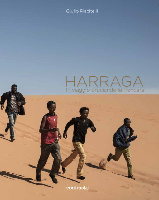 Quello di Piscitelli è infatti anche il primo reportage che documenta cosa attende i migranti al loro arrivo: i CIE, lo sfruttamento della manodopera a Rosarno, i campi di Castelvolturno. Giulio Piscitelli ha seguito anche La Rotta Balcanica documentando gli sbarchi sull’Isola di Kos e di Lesbo le migliaia di persone a Idomeni in attesa di attraversare il confine tra Grecia e Macedonia. La testimonianza presentata in Harraga è un lungo racconto che si articola in tre momenti fondamentali che corrispondono alle diverse fasi del reportage: dalle rotte africane verso l’Europa, passando per l’Italia e la Francia, fino ad arrivare alla rotta balcanica. Un diario visivo, un itinerario vissuto e raccontato in prima persona dal fotografo stesso. La spontaneità e l’intensità della scrittura diaristica, che accompagna con un unico grande sguardo le fotografie, amplifica il valore della testimonianza. L’attenzione del fotografo incontra “l’uomo” di cui racconta caso per caso e con grande umanità le esperienze e i drammi personali. Completano il volume un testo introduttivo di Alessandro Leogrande e le mappe inedite disegnate appositamente per questo lavoro dal cartografo Philippe Rekacewicz. Fino al 26 marzo il reportage, che ha vinto ha vinto la 13esima edizione del Premio Amilcare G. Ponchielli, è esposto a a Forma Meravigli (Milano) .
