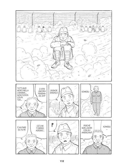 Si rinnova in tal senso la ricerca di un’identità frammentata fra le mille contraddizioni storiche, sociali e umane di una realtà che cerca pervicacemente di mantenere un rapporto sincero con la memoria e la Storia, forte di una spiritualità che guarda al rapporto con la natura e con gli antenati, salvo doversi scontrare con quotidiane difficoltà e la disillusione portata dai problemi annessi. Si passa così da racconti più traumatici, in cui gruppi di abitanti si suicidano pur di non cadere prigionieri dei “demoni” americani, a quelli più problematici (i bombardamenti in tempo di guerra, la caduta di mezzi militari e i danni che ne derivano in quelli di pace), fino a una visione più moderna e intrecciata alle dinamiche connesse al capitalismo (un tombarolo che ruba i reperti del passato per potersi concedere svaghi di lusso), ma senza dimenticare anche il legame profondo che unirà a quella terra i suoi abitanti e non solo (come nel racconto del militare americano diventato allenatore di baseball di una squadra locale, che torna a visitare nostalgicamente quei luoghi). In uno dei segmenti più belli, La scuola, che Higa ha dedicato a Osamu Tezuka, un gruppo di studenti cerca di salvare dei testi storici sepolti da centinaia di anni e ormai compromessi (una volta portati allo scoperto la carta si disintegra, quindi l’unica soluzione è ricopiarli), fino a una conclusione agrodolce che comunque ribadirà la caducità e il valore della vita. L’eroismo dei singoli e le colpe di chi dimentica sono dunque i temi portanti di un’antologia di grande rigore umano e morale, affrontata con piglio rasserenato come il tratto molto pulito e essenziale nella descrizione delle figure.