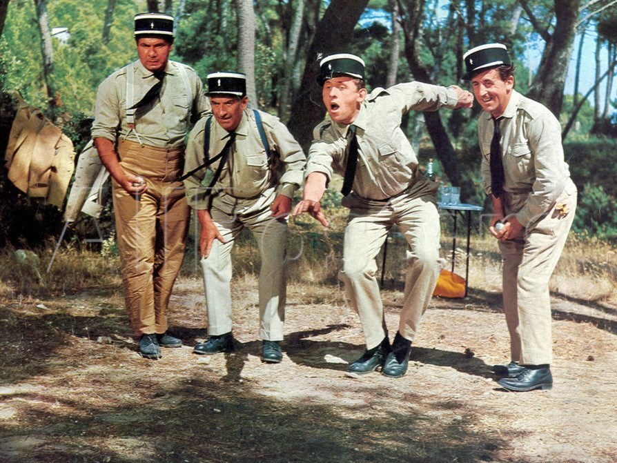 Nell’estate del ’63 Jean Girault propone al comico francese un copione scritto da Richard Balducci, che di lì a poco diviene Una ragazza a Saint-Tropez (Le gendarme de Saint-Tropez, 1964), primo film della serie (in totale sono sei) che ha per tema principale le avventure dello scalcinato maresciallo Ludovic Cruchot alias Louis de Funès e dei suoi buffi colleghi. Balducci, corrispondente durante la seconda guerra mondiale, in seguito diventa sceneggiatore e scrittore. Curioso è come nasca in lui l’idea di ambientare proprio a Saint-Tropez la storia dell’improbabile gruppo: rimasto vittima del furto di una cinepresa nella rinomata località turistica e recatosi a fare la denuncia, il brigadiere di turno candidamente gli spiega che loro sanno chi sia il ladro, ma che per arrestarlo devono coglierlo in flagrante. Divertito dal ragionamento comincia a fantasticare su come trasformare questo spunto iniziale in qualcosa di concreto.Le riprese durano sei settimane e il budget pur se limitato permette comunque di inserire nel cast un nutrito stuolo di bravi attori che, eccetto alcune modifiche, rimane lo stesso per tutti e sei i film. Il ciclo presenta, in effetti, diverse caratteristiche comuni: la sceneggiatura e i dialoghi sono sempre curati dall’inossidabile duo Girault-Vilfrid, le musiche sono costantemente opera del maestro Raymond Lefèvre che crea per l’occasione la canzone Douliou douliou Saint-Tropez, la famosa marcia dei gendarmi. Questi ultimi sono: Michel Galabru (Jérôme Gerber, il capo di de Funès) e i subordinati Jean Lefebvre (Fourgasse), Christian Marin (Merlot), Guy Grosso (Tricard), Michel Modo (Berlicot). Una ragazza a Saint-Tropez inizia in bianco e nero, poi con la promozione di Cruchot e il conseguente trasferimento in Costa Azzurra si colora. Il neo-maresciallo si mostra da subito intransigente (in particolare con i nudisti che popolano le spiagge locali, uno dei leitmotiv della serie), anche se di fronte ai superiori muta immediatamente atteggiamento. La parte permette, quindi, a de Funès di essere capo e subalterno al tempo stesso e di giocare con i rapporti di gerarchia, situazione da lui così sintetizzata: «Il gendarme? È tutta l’umanità! In fondo si lustrano sempre le scarpe dei superiori, ma ci si pulisce le mani sugli inferiori». Il maresciallo Cruchot, con i suoi scatti di ira e le smorfie inconfondibili, diventa in breve una maschera, un personaggio familiare a tutti i francesi e non solo. La pellicola si regge, come il resto del ciclo, su un’altra antinomia, quella che oppone de Funès ai giovani (specialmente la figlia). È come se lui incarnasse la Francia borghese e conservatrice che tenta inutilmente di arginare i mutamenti sociali e di costume. Dunque, il suo perenne arrabbiarsi e gesticolare animatamente non rappresenta altro che un’efficacissima metafora di questo sterile tentativo di reazione. Il film ottiene un enorme successo commerciale (n° 1 al botteghino d’oltralpe del 1964).