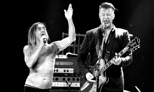 Neil Young, lo stesso Bowie con Blackstar), ché i ragazzini prodigio si spompano al terzo o quarto giro di valzer. E infatti. All’album numero 22 (o 23, o 24, a seconda di come consideriate un paio di eccentricità della sua discografia), arriva il disco che non ti aspetti. Ovvero, si diceva, Post Pop Depression (Caroline, 9t, 40:20). Un titolo da capogiro. Da maestro dell’anfibologia. O più semplicemente da miracolato. Un disco composto nel deserto, luogo d’elezione di un altro benedetto da Dio (che ha fornito riff e movimenti e intuizioni alle canzoni più belle mai composte dall’Iguana da chissà quanto): Josh Homme. L’uomo che dopo aver canonizzato lo psych-stoner con Kyuss e Queens Of The Stone Age sarebbe dovuto essere al Bataclan coi “suoi” Eagles Of Death Metal il 13 novembre scorso. Con loro, Dean Fertita e Matt Helders, ovvero il tastierista dei QOTSA, vecchio sodale di Homme, e il batterista degli Arctic Monkeys, qui alle prese con ritmiche spesso aliene a quelle del gruppo madre. Un album che vive di una forma mentis fatalistica e commovente, un ripensare con indole vergine a mille forme rock già declinate in passato, una pubblica elaborazione di lutti e tensioni come mai Iggy aveva neppure provato ad approcciare.