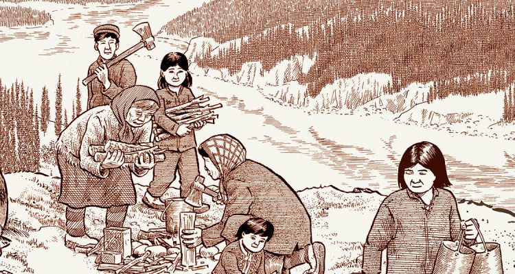 I Dene sono una popolazione che da sempre abita i Territori del Nord Ovest, in Canada. Per secoli hanno vissuto a contatto con la natura, seguendo i ritmi e le regole di un territorio freddissimo e inospitale. Una terra difficile, ma anche ricca di risorse, e questo di questo il governo canadese se n’è accorto. Inizia così una colonizzazione lenta, non violenta come quella americana ma sistematica nell’appropriarsi del mondo fisico, ma anche di quello culturale, di una popolazione il cui stile di vita cambia irrimediabilmente fino a rasentare la cancellazione. E qui sorge il dilemma: da una parte c’è chi si vorrebbe opporre alla devastazione che l’industria mineraria ed estrattiva si porta con sé, dall’altra c’è chi se ne fa una ragione e, nonostante il danno ambientale e sociale, sceglie di non rinunciare al progresso che porta guadagni immediati nel presente una speranza nel futuro per le nuove generazioni. Joe Sacco è un maestro del graphic journalism, una declinazione del fumetto per cui ha prodotto classici del calibro di Palestina, Gorazde area protetta e La Grande Guerra. Con il suo Tributo alla terra (Rizzoli Lizard, pag.272, euro 25), Sacco esplora uno degli angoli bui della storia, un’apocalisse lenta che vede una civiltà scomparire nel corso degli anni, senza fretta ma con un cambiamento inesorabile che non lascia spazio a possibili direzioni alternative per il corso della Storia. Gradualmente, le tende e le slitte trainate da cani del popolo nomade dei Dene lasciano spazio a camion giganteschi, ruspe e impianti per il fracking, un metodo di estrazione delle risorse dannoso per l’ambiente.