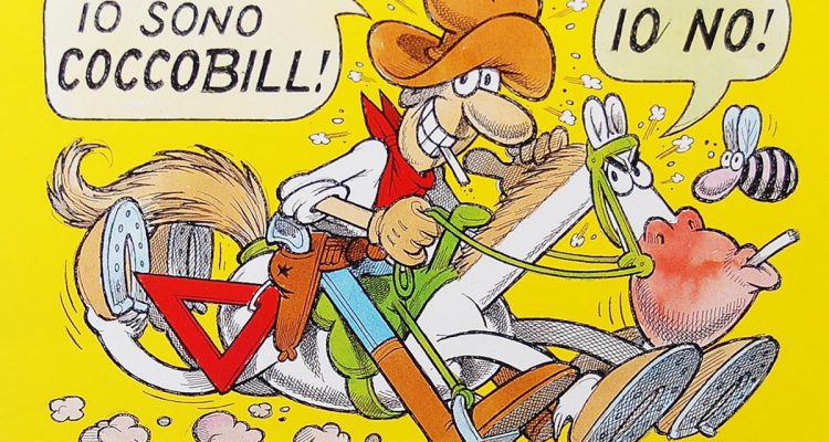 Cocco Bill, Joe Balordo, Pippo Pertica e Palla, la Signora Carlomagno. E non siamo nemmeno all’inizio dell’orda di personaggi creati da Benito Jacovitti, una delle prime superstar del fumetto italiano che già da prima della fine della Seconda guerra mondiale si era fatto conoscere grazie alle sue storie. Un personaggio pubblico amato come pochi nella storia della letteratura disegnata italiana, un punto cardine nella mappa mentale di generazioni di lettori che si sono goduti le loro risate migliori su quelle tavole letteralmente stipate di personaggi demenziali impegnati in così tante azioni esplosive che seguirle era divertente alquanto impegnativo. E i salami, la lisca di pesce, le mani e i piedi mozzi, tanti piccoli marchi di fabbrica che segnavano il territorio, qualora lo stile inconfondibile non fosse sufficiente, di un autore che ha caratterizzato il novecento italiano né più e né meno di Fellini o di Aldo Busi. Quest’anno cade il centenario della sua nascita (Il 9 marzo del 1923 a Termoli) e l’editore Baloon’s Art ha scelto di celebrarlo, il grande Benito Jacovitti, con un libro che ne ripercorre la vita e le gesta: 100 anni con Jacovitti, di Stefano Milioni ed Edgardo Colabelli. Chi scrive è figlio di un appassionato di Jacovitti, uno di quei ragazzi che, finché ha potuto andare a scuola, ha aspettato settembre per comprarsi il Diario Vitt nuovo di pacca.