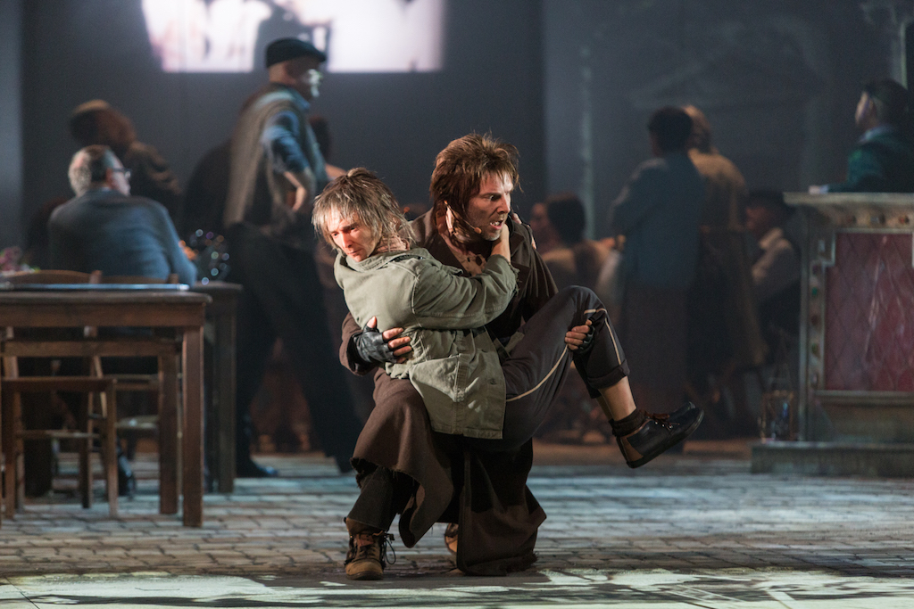 Ancora una volta Sokurov sembra dire che il tempo e lo spazio non sono importanti, per questo crea un luogo onirico, circondato dalla nebbia, dove si incontrano vivi e morti, animali e uomini. Nemmeno il tempo è reale: l’abbigliamento delle comparse e la presenza di soldati americani farebbero pensare al periodo subito dopo la Liberazione, ma il film di Fellini è del 1972, così come l’espulsione di Brodskij dall’Unione Sovietica. Non convincono del tutto la scelta di rendere i personaggi reali in maniera mimetica e l’immagine di un’Italia un po’ stereotipata e vetusta. Nemmeno l’unione di registri sonori disparati che creano varie tracce che si sovrappongono e confondono, caratteristica dello stile di Sokurov, risulta di facile fruizione a teatro. Rimangono invece impresse le molte suggestioni visive e il ritmo ondivago e onirico che ci trasporta in una realtà altra pur parlando anche del nostro presente.