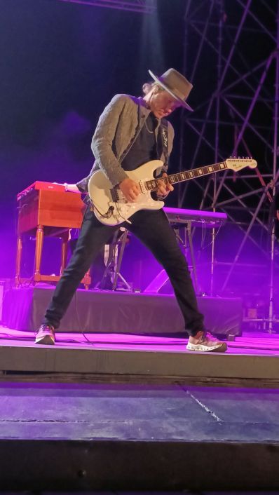 La chitarra fatta urlare, lanciata su traiettorie impossibili, puro blues con sopra profondi colori rock, una musica emancipata, affidata all’istinto. Dal vivo Kenny Wayne Shepherd mostra il suo vero volto. Da un po’ di tempo tutti i suoi concerti li chiude con Woodoo Child: sceglie l’occhio del ciclone, il salto nel furore, non per emulare Hendrix, il più grande di tutti (chi lo ha fatto è scivolato nel ridicolo), ma per riaffermare la forza della musica, con la libertà di prendersi 15 minuti e 22′ per consegnare alla platea una versione che non soffre di inganni o furbizie ma mostra la liberazione della pura energia, il doveroso (e commosso) omaggio alle radici. Negli ultimi trent’anni Kenny Wayne Shepherd è divenuto un punto riferimento della scena blues-rock americana. Il chitarrista autodidatta di Shreveport (Louisiana), ha fatto una cosa semplice e geniale: ha rivitalizzato il blues infondendogli una sensibilità rock moderna e dal vivo questa scelta emerge in modo cristallino. La Kenny Wayne Shepherd Band ha chiuso il suo tour europeo, con un unico concerto italiano sul palco di Tener-a-mente a Gardone Riviera. Il tono della serata è stato subito messo in chiaro da Woman Like You (dall’album The Traveler, del 2019), canzone d’apertura che ha annunciato una notte fra blues grintoso, puntuali riff rock e appaganti derive melodiche. E ha pure certificato che la scaletta sarebbe stato un viaggio attraverso l’ampia produzione della band che conta 14 album (compresi 2 live).