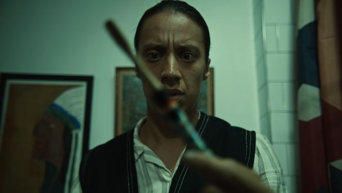 Quasi tutto girato negli spazi ristretti di un appartamento (tranne la breve scena iniziale sul marciapiede davanti al palazzo dove abita Riley, uno dei due personaggi, e quella finale nella stanza dove si svolge il colloquio di lavoro tra Riley e gli impiegati di un archivio creato per documentare e catalogare gli abusi subiti dai popoli nativi), The Beguiling (parola che può significare tanto “inganno” quanto “seducente”, e entrambi i termini sono perfettamente appropriati visto quanto accade nel film) è stata la magnifica sorpresa emersa dal denso programma della seconda edizione di Bref – International Short Film Festival di Aosta, manifestazione che, pur neonata, già si pone come punto di riferimento per l’esplorazione del vasto mondo del cortometraggio e di incontro per addetti ai lavori e pubblico partecipe e attivo. Un festival agito dalla passione, dall’entusiasmo, dalla competenza di un giovane gruppo di lavoro e “incorniciato” in un unico ma plurale spazio, Plus, vivace centro culturale di aggregazione per tante realtà realizzate nel capoluogo valdostano. Torniamo a The Beguiling (2024) del regista americano ishkwaazhe Shane McSauby, inserito nella sezione “Creepshorts”, parte del concorso internazionale, composta di otto titoli per un viaggio ibrido e fluido nell’horror, nel freak, nel fantastico, nell’umorismo nero.