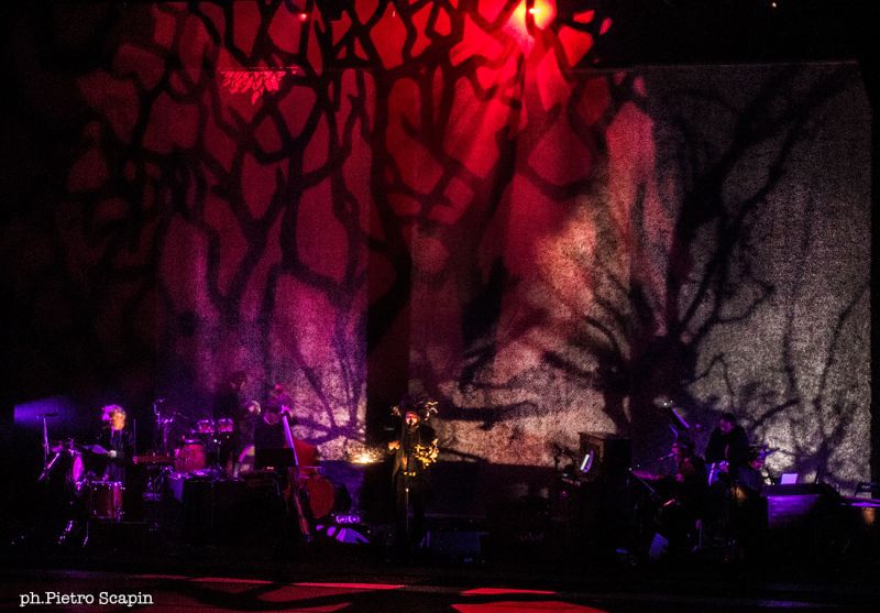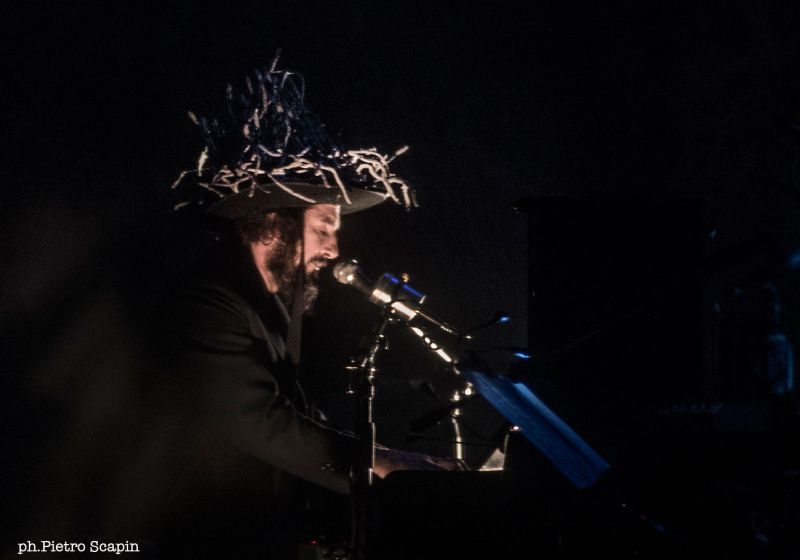 Non c’è meraviglia senza incubo, ecco allora lanterne magiche e ombre cinesi di grazia o cupezza (magnifico il lavoro di Anusc Castiglioni), cinematografo e buio, bottiglia a bordo piano, diavoli che pisciano e umane invocazioni-preghiere a San Michele, «angelo della luce… se non dovessimo vederci più, in Paradiso portaci tu.». C’è un profondo senso di kaos e kosmos, rottura e ricomposizione, così come una radicale partecipazione e condivisione con il pubblico (seduto dalla parte più buia del teatro, dunque l’Ombra, principe della nottata). Capossela pare ritrovare dentro le ombre – tangibili o interiori – il mondo. Trasforma il palco nel luogo più magico, alto e meraviglioso, proiezione – al contempo eterea e concreta – di quel misto di oscurità e luminescenza di cui sono impastate le ombre umane. Unisce “Teatro”, mitologia, immagini proiettate, pianobar, ottima orchestra eccentrica (quartetto d’arch