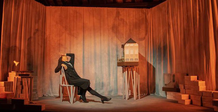 Le maschere di Charlotte, a volte tenerissime (quelle riguardanti l’infanzia) a volte inquietanti (quelle riguardanti la sua collaborazione con la Stasi e la delazione di alcuni suoi amici), sono indossate da Di Giacomo con una maestria leggera che a tratti commuove, a tratti fa sorridere, a tratti fa riflettere sugli enigmi della storia e sui misteri che ciascun individuo si porta dentro, creando una girandola di pensieri e di emozioni irradiata dai passaggi vorticosi da un personaggio all’altro, dal presente al passato e viceversa, tra schegge di racconto che inizialmente crediamo vere perché non possiamo non identificarci con la figura mitica di Charlotte ma poi vengono messe in discussione da documenti e testimonianze di altri. Mentre Di Giacomo cammina, danza, canta, modula la voce per evocare le diverse identità che si avvicendano nel testo di Wright, l’ossessione del testo e del suo autore per Charlotte, o meglio la ricerca ossessiva della vera Charlotte, si avvita su se stessa, incespica, annaspa, dovendo fermarsi di fronte a delle contraddizioni insanabili tra la testimonianza della protagonista e quelle degli altri.