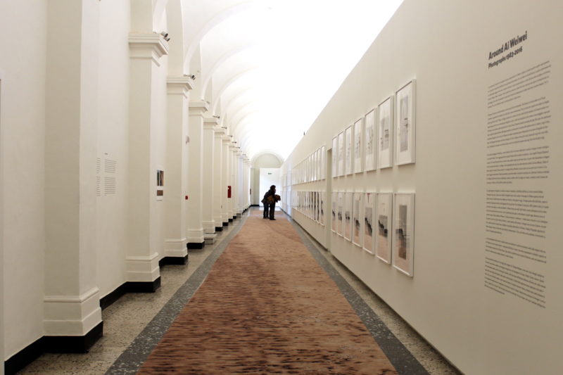 L’approccio fotografico è quello che mira a mettere in evidenza l’urbanistica e l’architettura dell’epoca con Beijing Photographs 1993-2003 serie inedita di fotografie in cui si ritraggono la vita, le azioni e l’entourage di Ai Weiwei appena prima del rapido processo di trasformazione che avrebbe reso Pechino la città globale di oggi. Lo spiccato autobiografismo delle opere in mostra è messo in evidenza anche da una selezione non fotografica che accompagna la mostra, in cui una serie di sculture sono chiamate a diventare simboli dello svolgersi della vita di Ai Weiwei nel corso di quarant’anni: readymade e opere in porcellana a rappresentare le molteplici capacità e le ricche sfumature espressive che l’artista utilizza. Ogni scultura si manifesta come punto di riflessione, come una sospensione del tempo. Quando si arriva all’ultima sezione, infine, si è accompagnati a scoprire in anteprima uno degli ultimi progetti di Ai Weiwei: Refugee Wallpaper, ovvero 17.000 immagini scattate da Ai durante il suo continuo contatto con l’emergenza rifugiati che si sta dispiegando in Europa, in Medio Oriente e altrove. Opera monumentale per quantità e significato, che si interroga sulle devastanti analogie del mondo contemporanea. All’interno dei confini sempre più fragili, il dramma della migrazione diviene spettacolo come tutto il resto. con la collaborazione di You Mi, curatore aggiunto e Ryan Nuckolls, ricerca e coordinamento in Cina. Impossibile non parlare dell’immagine guida scelta dall’artista, che da sola riesce a riassumere e illustrare la mostra. Si tratta di una fotografia scattata nel 2003 dal titolo The Forbidden City during the SARS Epidemic e mostra l’artista solo nella Città Proibita, svuotata dall’epidemia che ha isolato la Cina dal resto del mondo per sei mesi e che ha trasformato in città fantasma moltissimi villaggi e cittadine.