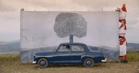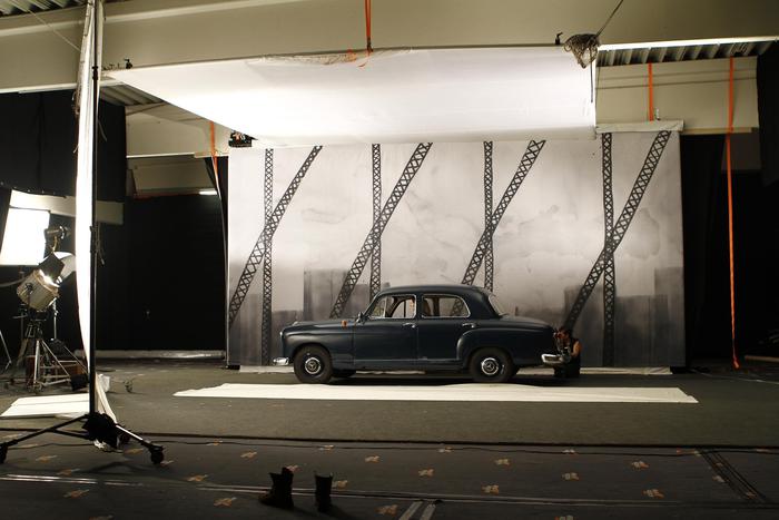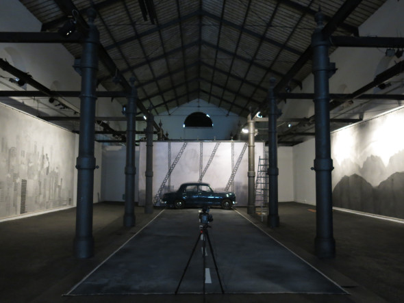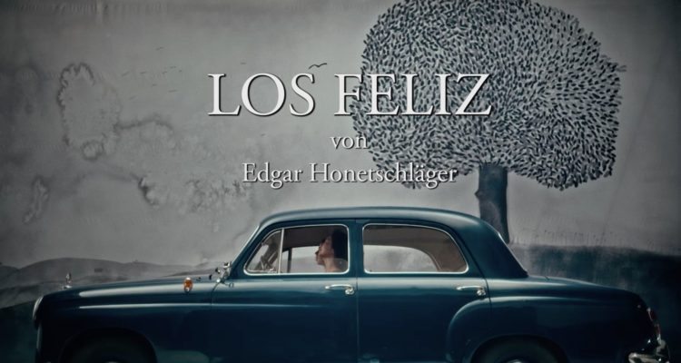 Nel film LOS FELIZ una macchina appositamente costruita fa muovere gli enormi dipinti, creando l’illusione di un’auto in corsa attraverso i tipici paesaggi americani. Questa gigantesca macchina per gli sfondi, che svela il meccanismo con cui è stato prodotto il lungometraggio, verrà presentata sotto forma di installazione. Il Cristianesimo è l’unica religione ad aver reso l’immagine la fonte principale del proprio potere. Partendo da questo presupposto, LOS FELIZ di Edgar Honetschläger postula che “Coloro i quali creano le immagini dominano il mondo” e collega continuamente le due città-simbolo della produzione e della manipolazione di immagini: Roma/Città del Vaticano e Los Angeles/Hollywood. Ma esiste una forza che tende a sfidare questa supremazia dell’Occidente… Come il libro della Genesi, anche il lungometraggio ha una struttura divisa in sette giorni: il primo si svolge a Roma, l’ultimo a Los Angeles, e nei cinque di mezzo il viaggio da est a ovest dei protagonisti ritrae un’America bidimensionale, in bianco e nero, che rielabora l’iconografia classica dei road movie statunitensi. LOS FELIZ racchiude in un’unica stanza la vastità del continente nordamericano. Una fiaba, allo stesso tempo commedia e tragedia, che delinea con umorismo e ironia una caricatura dell’onnipresenza dell’immaginario occidentale e dei film hollywoodiani nel mondo – senza mai tralasciare di prendersi gioco di se stessa, dell’illusione dei film e del genere canonico dei road movie.