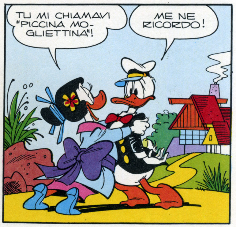 Il percorso espositivo, curato da Enrico Ercole, tra tavole originali e accurate riproduzioni, propone le più belle pagine dei fumetti ispirati alle opere di Giacomo Puccini e alla narrazione della sua vita. Partendo da una magnifica tavola originale realizzata appositamente per la mostra da Milo Manara e ispirata ai figurini scaligeri per Madama Butterfly, la mostra alterna pagine tratte da divertenti parodie a fumetti a storie pubblicate in tutto il mondo. Tra le parodie più divertenti esposte si trovano naturalmente quelle disneyane, partendo proprio da Paperino e la Piccola Butterfly (1981, sceneggiata e disegnata dalla grande coppia Guido Martina-Giovan Battista Carpi) fino ad arrivare a Paperina “fanciulla del West” (1979, sceneggiatura di Gian Giacomo Dalmasso, disegni di Giuseppe Perego). La prima, pubblicata su un albo come supplemento a Topolino, propone una singolare versione “paperesca” del capolavoro pucciniano con Paperina che veste i panni di una Cio-Cio-San un po’ diversa da quella protagonista del melodramma, pronta ad aspettare il ritorno del suo Pinkerton (Paperino) con tanto di mattarello in mano! La seconda rilegge l’opera La fanciulla del West con Paperina che impersona Minnie, una bella locandiera che gestisce un saloon nel lontano West, la cui vita tranquilla viene scombussolata dall’arrivo di un misterioso bandito (Gastone) sulle cui tracce si mette un coraggioso sceriffo (Paperino). Contrariamente a quanto avviene nell’opera di Puccini, la bella locandiera, dopo essersi battuta per la liberazione del bel bandito, si lascia conquistare dallo sceriffo. Non mancano anche pagine tratte dalla divertente storia Paperonbot (1991, testi di Antonella Pandini e disegni di Valerio Held) dove il protagonista di un’improba