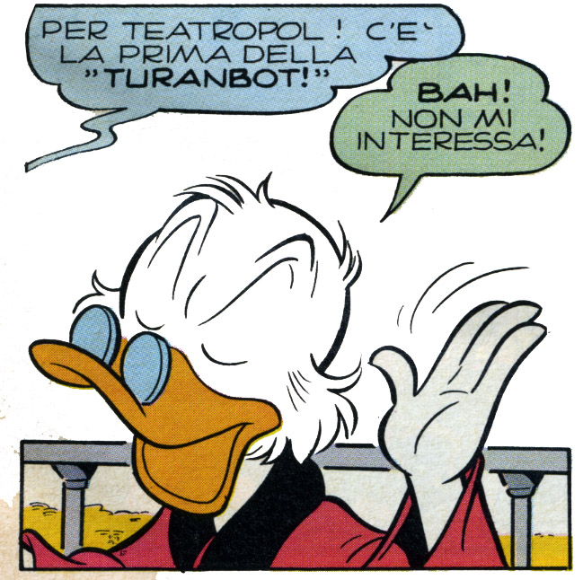bile Turandot tutta disneyana è Paperon de’ Paperoni che, addormentatosi a teatro mentre assiste all’opera pucciniana, sogna di essere l’imperatore della Cina…