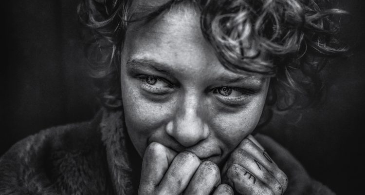 Per realizzare ritratti fotografici potenti come questi, ancor prima della competenza tecnica o della visione artistica occorrono due requisiti fondamentali: la vicinanza e l’empatia con i soggetti. Le inquadrature di Lee Jeffries spiegano da sole quale sia l’approccio con il quale interagisce coi senzatetto o con le persone in genere: nulla di superficiale, di rubato in velocità restando a distanza, ma un obiettivo corto e un approccio volto a costruire con ciascuno di loro un rapporto che vada ben oltre l’istante decisivo dell’immagine finale che noi vediamo appesa. L’autore ha conosciuto ogni singolo soggetto che ritrae, lo ha frequentato a lungo, a volte ha dormito con lui per strada, lo ha spesso aiutato, ben prima di inquadrarlo. In qualche modo lo aspetta, attende il tempo necessario al sorgere di quella fiducia reciproca grazie alla quale entrambi abbassano le difese per comunicare. I suoi personaggi emergono dal buio profondo, inondati da una luce teatrale, quasi caravaggesca, che restituisce ogni segno sulla pelle, ogni dolore racchiuso nel profondo dell’anima. Anche i contrasti così marcati, materici, della sua postproduzione, gli servono a svelare il mistero sull’essere umano.