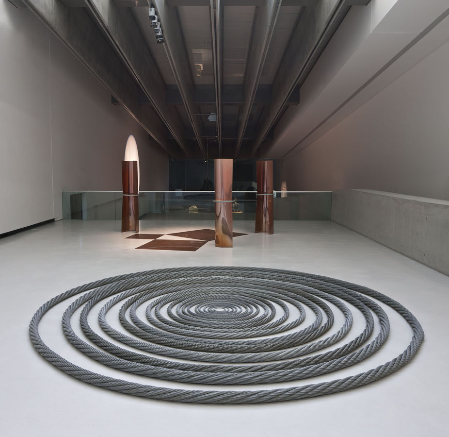 Nel punto immobile del mondo rotante (a cura di Cristina Ambrosini e Davide Ferri, Musei San Domenico – chiesa di San Giacomo, Forlì) non è una mostra tradizionale. È piuttosto un dialogo prolungato tra Remo Salvadori (nell’immagine qui sopra Lente liquida, 1996-1998. Foto Luca Massari) e l’architettura di San Giacomo – che si dispiegherà fino al 18 settembre 2016 –, una lunga frequentazione tra il corpo dell’opera e quello dell’edificio ospitante, dove troveranno luogo lavori emblematici della poetica di Salvadori. È proprio un’idea di vitalità dell’opera, dell’opera come luogo attorno a cui si addensa un’energia e si vive un’esperienza, uno scambio intimo e dinamico con lo spettatore, che gli interventi di Salvadori al San Giacomo attivano e nutrono. Le opere dialogano tra loro e con l’architettura da posizioni diverse e potenzialmente complementari, e, nel corso dei mesi, rinnovano il loro rapporto con lo spazio attraverso spostamenti, nuove collocazioni che accompagnano gli eventi programmati (concerti e conferenze).