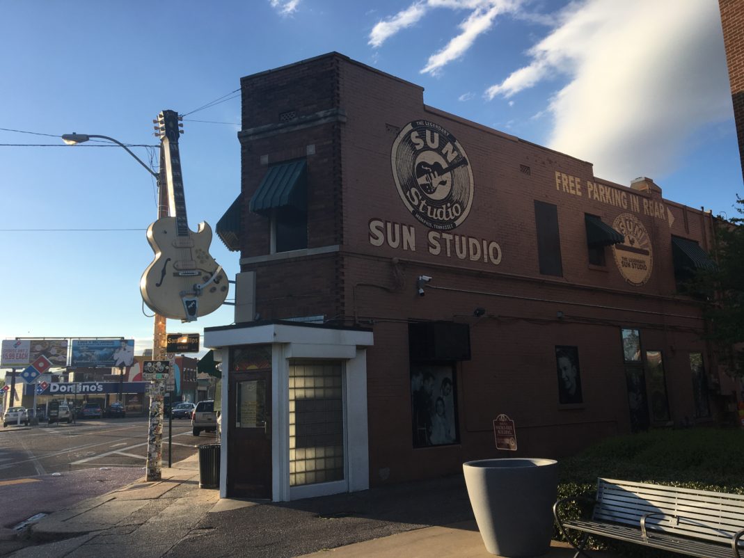 Dischi pochi e mal esposti, i diritti discografici sono della Universal. Per quelli e per ritrovare il diciottenne che registrò il suo primo vinile per quattro dollari nell’estate del 1953, bisogna recarsi al Sun Studio. In quel luogo fragile, in cui convergono ferrovia, fiume e highway e in cui si accordarono tutti i kings della musica, Elvis non è più isolato nel suo culto ma restituito alle sue radici musicali (Blues, Gospel, Country) e circondato dai suoi compagni di etichetta, bianchi (Jerry Lee Lewis, Johnny Cash, Carl Perkins) e neri (Howlin’ Wolf, B.B. King). In quella minuscola sala di registrazione, raccordo magico tra la strada e la gloria, si articola finalmente l’importanza artistica di Presley e la deflagrazione che fu la sua apparizione in scena e nell’America ‘composta’ degli anni Cinquanta. Quando il suo rock era selvaggio e in bianco e nero, quando il suo magnetismo era sciamanico e il suo ancheggiare culto. Ma il tempo è tiranno e un altro gruppo incombe dietro la porta di Samuel Phillips, dove per 85 dollari puoi (ancora) registrare. Incidere una canzone al Sun Studio costa meno che diventare VIP a Graceland. Make the choice. Seguiamo l’uscita e rimandiamo all’attesa al gate le riflessioni sul Re di Tupelo che fece l’impresa con una voce limpida che non ha mai finito di vibrare. Sensibile come ogni pellegrino all’acquisto compulsivo, compro un paio di occhiali da sole uguali a quelli che Elvis commissiona a Dennis Roberts, ottico di Sunset