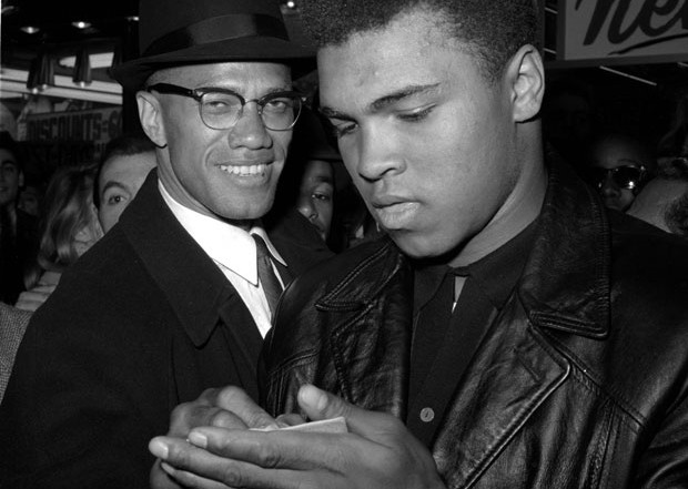 he lo colpirà anni dopo, a quella decisione di andare avanti. Il più grande pugile della storia non vuole scendere dal quadrato: sente di incarnare aspirazioni, tensioni, lotte sociali. E poi come tutti i boxeur non accetta che sia finita, non si vuole arrendere. La sua carriera ha sempre fatto corsa parallela con la storia statunitense. Nel febbraio del 1964, a vederlo trionfare contro Sonny Liston, in prima fila c’è Malcom X: è il viatico perfetto perch il ragazzino ventiduenne di Lousville (Kentucky), che il giorno seguente annuncia di essere un membro della Nation of Islam, faccia il suo ingresso sulla ribalta politica, prima nazionale e poi internazionale. Lo interrogano su tutto e lui risponde su tutto, si telefona con Bertrand Russell per parlare di pacifismo, rilascia dichiarazioni taglienti:”perché i cosidetti negri di Louisville vengono trattati da sempre come cani?” Per l’FBI, che l’ha schedato e messo sotto sorveglianza, è un sovversivo. Viene attaccato dai giornali, ma le sue apparizioni ai talk-show sono seguitissime. E’ irridente, provoca:” io non ho mai avuto niente da ridire con quei vietcong