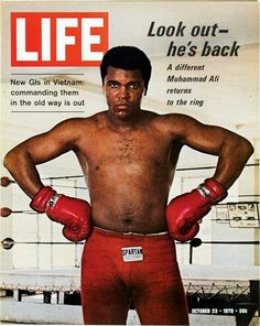 ”. Negli anni Sessanta si impone, mentre nel decennio successivo è la sua visione del mondo a passare. Il perché ce lo racconta Norman Mailer:”provi sempre una forte impressione quando lo vedi (…). Le donne emettono un udibile sospiro. Gli uomini abbassano lo sguardo. Si rammentano di nuovo del loro scarso valore. Anche se Alì non avesse mai aperto bocca per fare tremare le gelatine dell’opinione pubblica, ispirerebbe sempre amore e odio. Poiché Alì è il Principe del Cielo: così dice il silenzio che circonda il suo corpo quando egli è luminoso”.