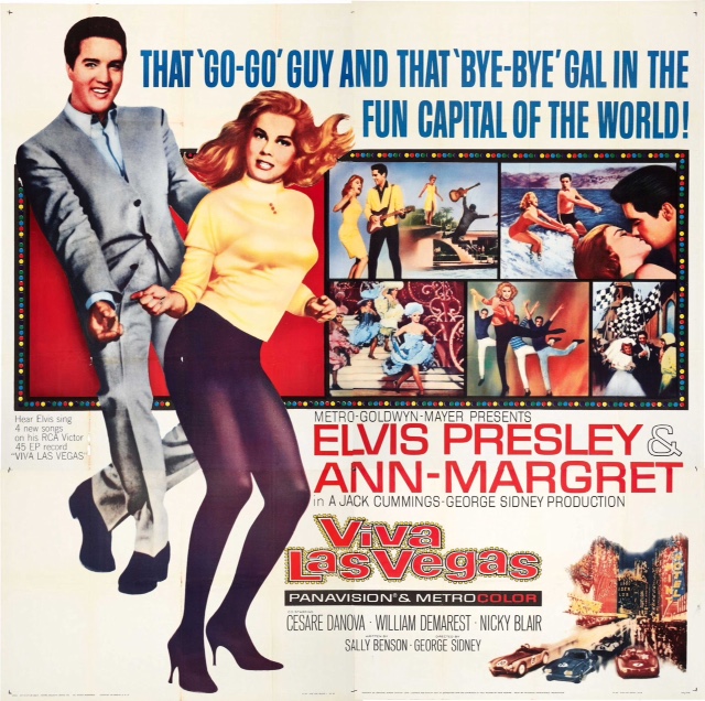 musicali, in cui interpreta un pilota che arriva nella capitale del gioco d’azzardo in cerca di soldi, ma trova l’amore (Ann-Margret). Siamo nel 1965 ed Elvis trasforma in oro tutto quello che tocca. Gira tre film all’anno, senza curarsi troppo della qualità. È una macchina per fare soldi e il pubblico va al cinema per vedere lui, anche perché ha smesso di esibirsi in pubblico e lo si può vedere solo sul grande schermo. La trama è sempre la stessa (come capirono all’epoca i traduttori dei titoli in italiano). In Girl Happy (Pazzo per le donne, di Boris Sagal) deve sorvegliare l’esuberante figlia (Shelley Fabares) del proprietario di un night club; in Tickle Me (Per un pugno di donne, di Taurog) è il cowboy canterino, attrazione di un ranch per turisti che aiuta una collega a recuperare un tesoro di famiglia; in Harum Sacrum (Avventura in Oriente, di Gene Nelson) si concede un’improbabile avventura esotica in cui viene rapito per la sua abilità nel karate; in Frankie e Johnny di Frederick De Cordova, è circondato da fanciulle adoranti su uno show-boat in viaggio lungo il Mississippi; in Spinout (Voglio sposarle tutte, del sodale Taurog) non sa quale scegliere tra tre pretendenti; in Paradise, Hawaiian Style (Paradiso hawaiano, di Michael Moore, 1966) è un pilota che vorrebbe istituire un collegamento con le isole Hawaii. Sarà ancora Taurog a dirigerlo, nel 1967, in Double Trouble (Fermi tutti, cominciamo daccapo!), pasticciato giallo su un cantante in tour in Europa, inseguito dalla fidanzata che qualcuno vuole uccidere mentre in Easy Come, Easy Go (3 fusti 2 bambole e… 1 tesoro, di John Rich), interpreta un tenente di marina che scopre un relitto in fondo al mare, ma diventerà ricco come cantante di night.