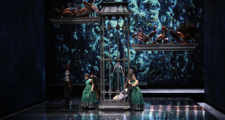 Nicolò Massazza: È stato Mariano Furlani, interessato a esplorare la fascinazione che deriva dall’inserire l’arte visiva all’interno dell’opera, a chiamarci. È nata come una sorta di proposta innocente. Poi si sono disegnate delle linee in maniera molto naturale perché lui, con la sua esperienza e la sua profonda conoscenza dell’opera, aveva ben chiaro come procedere. Ha dato l’ossatura, lo scheletro, lasciandoci totale libertà di movimento nelle parti più bizzare e meravigliose dell’opera, ma anche nelle zone più scure e ombrose. In questo modo ci ha riconosciuto un ruolo importante. In tal senso va intesa l’ideazione: abbiamo discusso tanto del progetto, anche per lui era importante capire come inserire il discorso visivo. Lo abbiamo fatto in forma spaziale, attraverso un grande schermo sullo sfondo, altri schermi che scendono o scegliendo di proiettare direttamente sulla scenografia. Siamo riusciti a stare all’interno delle regole dettate dal regista, ma muovendoci in assoluta libertà e riuscendo alla fine a coniugare la tradizione con l’arte più sperimentale.