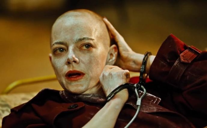 È cambiata nel frattempo anche la vittima, che ora è una donna in carriera (l’ormai immancabile Emma Stone, rasata a zero come Natalie Portman in V per Vendetta) che dirige un’industria farmaceutica e cerca la nuova cura definitiva alle malattie che affliggono l’umanità – tra incel e teorie antiscientifiche il quadro, insomma, è molto chiaro. In questo senso, Lanthimos cerca ancora una volta di forgiare una nuova visione del mondo: usa così i complotti come materiale satirico rispetto a una società in preda al caos – forza che da sempre governa i personaggi del suo cinema – e lavora su una logica dell’accumulo fatta di un’umoralità cangiante. Diversamente dal prototipo coreano che assecondava in modo follemente coerente la propria vena grottesca, qui il tono è infatti più incline agli umori della tragedia, almeno fino a quando il film non decide di abbracciare la propria intrinseca propensione all’assurdo nella parte finale, decisamente più ironica. Dal seminterrato del Sacrificio del cervo sacro si arriva così al surrealismo delle Povere creature!, fra torture e esperimenti che tracciano una mappa sociale e emotiva indubbiamente capace di sorprendere.