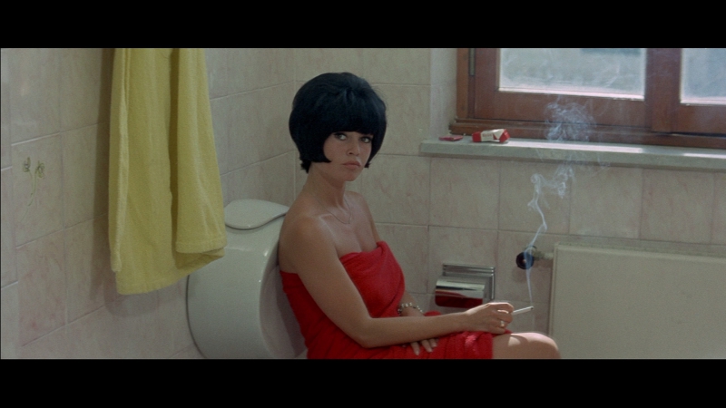 Torna in circolazione nelle sale italiane (grazie alla Cineteca di Bologna) un film controverso e ai tempi sfortunato, ma destinato a diventare imprescindibile per un immaginario cinematografico non solo ricco, ma saggio e solido. Per la prima volta viene proposto il director’s cut del film, restaurato in 2K nel 2013 da Studio Canal. Può sembrare un discorso di quelli da primi della classe, ma basterà vedere o rivedere questo film (che ebbe non poche peripezie produttive, con tagli e censure tali da spingere Godard a rinnegarne la versione italiana fatta rimontare dal produttore Carlo Ponti) per accorgersi che si tratta di un’opera, solare e cinica al tempo stesso, sul cinema e su come, completamente e tragicamente, esso si intreccia alla relazione quasi inconciliabile tra uomo e donna. Discorso da sempre caro a Godard, e più volte investigato nell’evoluzione interiore dei suoi personaggi (da À bout de souffle a Masculin, féminin, da Nouvelle vague a Adieu au langage), che qui, invece,  viene letteralmente trasferito in una cornice altra, bellissima, ma crudele, perché nell’assolata Cinecittà e sotto il cielo blu di Capri il regista non concede appigli ai suoi personaggi (non più la città, Parigi, con tutti i suoi angoli noti e rassicuranti), ma li costringe a vivere come sospesi nel nulla, stranieri e smarriti in spazi che sembrano decadenti (i teatri di posa che sarebbero stati dismessi subito dopo le riprese, la villa disabitata e chiusa da tempo) e in bilico, infine, su quella scalinata nuda di villa Malaparte, che sembra finire nel vuoto, sotto il sole, tra cielo e mare. E senza alcun “conforto” cromatico, perché non ci sono sfumature in questi ambienti dominati da linee rette (reali o allusive) ma solo colori saturi e potenti. Rosso, giallo, blu, bianco, nero dominano la lunghissima scena nell’appartamento romano di Paul e Camille, il vero cuore del film, che è anche una coreografia perfetta e un saggio di regia in interno, dove lo spazio dice più delle parole e quei colori hanno la forza di sottrarre profondità al linguaggio. E così si gira in tondo, tra porte che non hanno i pannelli e stanze che sembrano reduci da un trasloco recente.