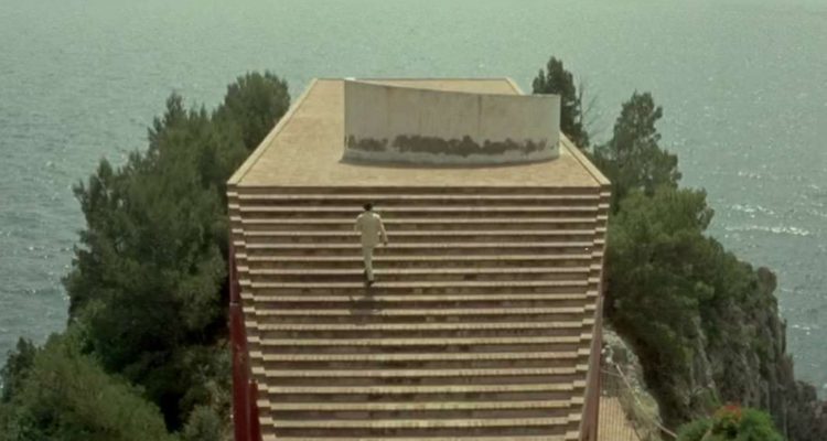 Torna in circolazione nelle sale italiane (grazie alla Cineteca di Bologna) un film controverso e ai tempi sfortunato, ma destinato a diventare imprescindibile per un immaginario cinematografico non solo ricco, ma saggio e solido. Per la prima volta viene proposto il director’s cut del film, restaurato in 2K nel 2013 da Studio Canal. Può sembrare un discorso di quelli da primi della classe, ma basterà vedere o rivedere questo film (che ebbe non poche peripezie produttive, con tagli e censure tali da spingere Godard a rinnegarne la versione italiana fatta rimontare dal produttore Carlo Ponti) per accorgersi che si tratta di un’opera, solare e cinica al tempo stesso, sul cinema e su come, completamente e tragicamente, esso si intreccia alla relazione quasi inconciliabile tra uomo e donna. Discorso da sempre caro a Godard, e più volte investigato nell’evoluzione interiore dei suoi personaggi (da À bout de souffle a Masculin, féminin, da Nouvelle vague a Adieu au langage), che qui, invece, viene letteralmente trasferito in una cornice altra, bellissima, ma crudele, perché nell’assolata Cinecittà e sotto il cielo blu di Capri il regista non concede appigli ai suoi personaggi (non più la città, Parigi, con tutti i suoi angoli noti e rassicuranti), ma li costringe a vivere come sospesi nel nulla, stranieri e smarriti in spazi che sembrano decadenti (i teatri di posa che sarebbero stati dismessi subito dopo le riprese, la villa disabitata e chiusa da tempo) e in bilico, infine, su quella scalinata nuda di villa Malaparte, che sembra finire nel vuoto, sotto il sole, tra cielo e mare. E senza alcun “conforto” cromatico, perché non ci sono sfumature in questi ambienti dominati da linee rette (reali o allusive) ma solo colori saturi e potenti. Rosso, giallo, blu, bianco, nero dominano la lunghissima scena nell’appartamento romano di Paul e Camille, il vero cuore del film, che è anche una coreografia perfetta e un saggio di regia in interno, dove lo spazio dice più delle parole e quei colori hanno la forza di sottrarre profondità al linguaggio. E così si gira in tondo, tra porte che non hanno i pannelli e stanze che sembrano reduci da un trasloco recente.