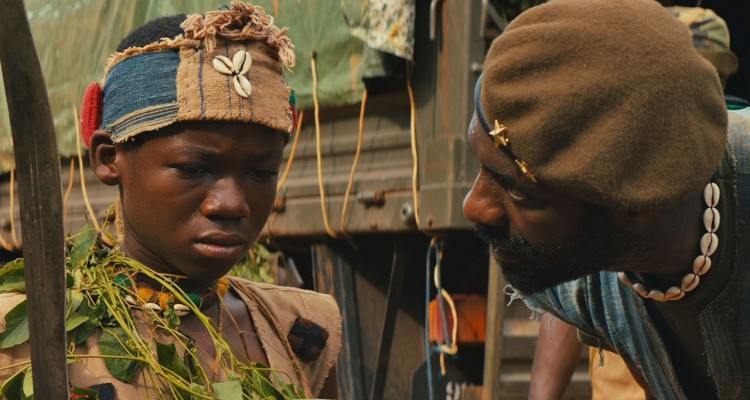 L’impianto però è prevalentemente quello della fiaba occlusa nell’orrore dell’esperienza reale dei bambini soldato che, in Africa come in altre parti del mondo, vedono la loro infanzia ribaltata nell’orrore della guerra, che prima subiscono e poi praticano. L’incipit pone le basi di una serenità familiare che aderisce alla vita quasi normale di Agu, il piccolo protagonista: la sua infanzia è quella di un bambino che vive assieme alla famiglia in un villaggio cuscinetto di un non meglio precisato paese africano preso nel pieno di una guerra civile tra i governativi e i ribelli. Poi le milizie avanzano, i soldati arrivano, la confusione porta morte per mano di uno o dell’altro e Agu si ritrova solo come un enfant sauvage nel mezzo della foresta, smarrito sino a quando non viene fatto prigioniero da un battaglione di bambini guidato dal sedicente Comandante (Idris Elba). Fukunaga ripercorre così la traccia dell’educazione bellica, del piccolo soldato irreggimentato nella violenza subita ed agita, basandosi sul libro di Iweala Uzodinma Bestie senza una patria, dettato all’autore dalla sua esperienza nei centri di riabilitazione per i bambini soldato africani. Lo scarto stilistico sta tutto nella definizione di una focalizzazione soggettiva che preserva l’innocenza dello spirito del protagonista nella contraddizione dell’orrore di cui è te