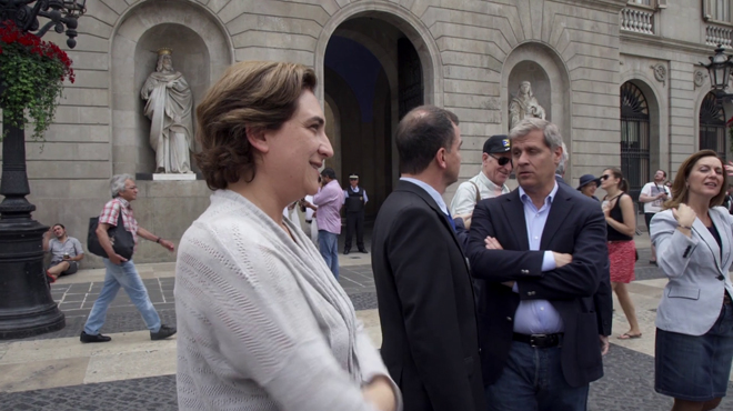 reta, la stima dei compagni d’avventura nei suoi confronti. Ma poi la narrazione procede di pari passo con la progressione della campagna elettorale: quindi il documentario racconta in diretta gli avvenimenti, senza conoscerne preventivamente l’esito; e ciò aumenta la naturalezza delle immagini, la capacità che detengono di documentare il reale, e conferisce loro un’ulteriore (forse non preventivata) credibilità. Sul piano della storia, appare evidente la volontà di fondo di creare un collegamento tra l’esperienza degli indignandos e la successiva campagna per vincere le elezioni amministrative a Barcellona e in altre città iberiche, secondo una linea di condotta che mira a scompaginare un quadro politico ritenuto paludato, abbattere i privilegi, e assegnare alla cittadinanza un ruolo da protagonista assoluta. Il ritratto della 41enne Colau è umano, prima che politico, e quindi non si fa problema di indugiare sulle difficoltà quotidiane, anche personali, piuttosto che insistere sugli aspetti pubblici e su quelli programmatici. Questi ultimi sono tuttavia affidati ad alcune intuizioni notevoli, sul versante della tecnica di ripresa: spiccano in tal senso i momenti dedicati al confronto televisivo tra i candidati, nel quale il linguaggio del corpo, colto con rigorosa puntualità dal regista, esalta la tranquillità propositiva della Calau rispetto all’atteggiamento rancoroso di alcuni avversari; o la sequenza – che lo spettatore vive con la tensione stessa dei protagonisti – in cui la donna, in attesa nella sede del suo comitato elettorale, riceve la telefonata di congratulazioni del sindaco uscente, e capisce di avere vinto. Tra i punti deboli ci sono, per contro, certe scelte di montaggio, che smorzano un poco la carica entusiasta di Ada – quasi a conferirle, a posteriori, una compostezza istituzionale dalla quale ella sembra in realtà prescindere, in ogni suo discorso e in ogni occasione della campagna elettorale – e un paio di simboli fin troppo scontati. Il primo, troppo esplicito, affida alla ripresa di una sessione di pulizie del palazzo comunale, i momenti che precedono l’arrivo della nuova giunta; quello conclusivo, un poco dimesso dopo il crescendo costante verso il discorso di insediamento, vede i collaboratori di Ada Colau al lavoro in una riunione nella quale ella si pone come “prima inter pares”, a rimarcare la imprescindibile matrice democratica del movimento. I pregi sono tuttavia assai superiori ai difetti. L’andamento ordinato e asciutto, scandito da tempi espositivi non convulsi, pare infatti una precisa scelta registica, che Faus porta avanti senza tentennamenti. Tanto che Alcaldessa si fa aprezzare per la scorrevolezza e si rivela interessante testimonianza di una storia di impegno civile che in buona parte è ancora da scrivere.