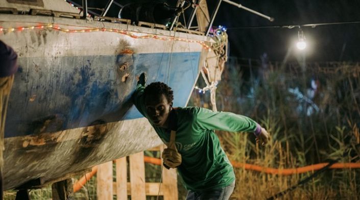 Opera prima di Giorgio Caporali, autore anche della sceneggiatura che prende ispirazione da storie realmente accadute e che in parte rielabora vicende autobiografiche, al netto di sbavature e forzature, L’arca è un titolo da prendere sul serio: vivace, per nulla compiaciuto, attento quando s’interroga seriamente, appunto, sulla condizione giovanile senza inciampare in facili compromessi o senza prestare il fianco a mondani ritratti didascalici di convenienza. È un film non privo di improvvisi rovesciamenti che scoperchiano il lato più emotivo dell’intreccio costruito su una solida idea, un tema forte, un assunto, che sovverte i codici rappresentativi e narrativi del cinema contemporaneo intento a portare in scena storie di immigrazione e alienazione, storia di sopravvivenza e lotta, ma anche definito da un sorprendente epilogo luminoso ma non banale. Il disilluso Ryan, giovane africano clandestino che fugge dal suo tutore legale, sfiduciato dal sogno europeista e convinto di tornare in Africa nonostante la grande paura dell’acqua, conseguenza del viaggio che lo ha condotto in Italia, incontra sul proprio cammino il ribelle e scanzonato Martin, vestiti eccentrici e treccine bionde sui capelli, una via di mezzo di stili, un miscuglio di identità, un crogiuolo di storie. Due strade che convergono davanti a una barca da sistemare (che prende il nome di Cassiopea e ispirata dall’auspicio dell’amore giovanneo) e riportare in mare, per cullare il sogno di un paradiso da raggiungere e un inferno da abbandonare.