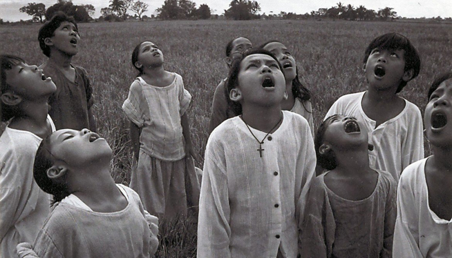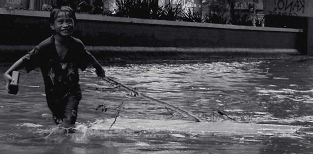 Nel quadro esposto in enorme profondità di campo, bianco e nero abbacinante di pozzanghere e selciati, i bambini figli di Yolanda, sembrano esporre, anzi azionare a perfezione il meccanismo espressivo di Lav Diaz: la riesumazione di oggetti ben definiti (una borsa con sopra stampato il marchio della Coca Cola, una scatola in polistirolo, una palla, ecc.) dalla massa indistinta di fango e ciarpame provocata dall’uragano. Figli dell’uragano è soprattutto una questione linguistica che si arricchisce se considerata in relazione agli ultimi due film di Lav Diaz, soprattutto The Woman Who Left che sviluppa una temporalità stringente, funzionale alla narrazione (per non far sentire il tempo e dare invece tempo di farsi alla carne, gli eventi dei personaggi) anziché alla contemplazione e proprio alla mappatura dell’inquadratura, presupposto di questo documentario: trae immagini a elevata definizione, in totale profondità di campo, dall’indistinta fanghiglia del visibile, facendone un poema atmosferico, della pioggia, dell’intriso; come dalla massa di lemmi generici, acqua, terra, aria, la scrittura ricava parole, aggettivazioni, specificazioni, senza cui non ci sarebbe opera. I bambini stanno acquattati sul terreno, su strati di fango, o sui parapetti dei ponti, e scavano o pescano con gli stecchi, le cose perdute e portate dai corsi d’acqua. I ponti sono muffosi, illividiti dall’acqua battente; le strade scalcinate, peste, ornate da una grande quantità di detriti, materassi, vegetazione estirpata alle radici, immondizia ossificata dall’azione dell’acqua, che traspaiono dai reticolati divisori e l’intrico dei fili, dei