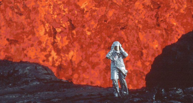 Katia e Maurice Krafft. Francesi. Famosi per aver scattato immagini incredibili dei vulcani. Inizialmente poco rispettati dalla comunità scientifica per il loro stile anarchico e per il rifiuto di inquadrare le loro ricerche in rigorosi percorsi accademici, in seguito, di fronte all’evidenza delle loro imprese, apprezzati ed esaltati. Scrissero libri, tennero conferenze in Francia e all’estero, realizzarono servizi fotografici e documentari per la televisione così da riuscire a finanziare i loro numerosi progetti. Come quando, in collaborazione con l’UNESCO e con la società di ricerca internazionale IAVCEI (International Association of Volcanology and Chemistry of the Earth’s Interior), realizzarono il film Living Under the Threat of Volcanoes in seguito alla devastante eruzione del Nevado del Ruiz nel 1985, in Colombia, che causò la morte di circa 23mila persone. Pare abbiano esplorato 175 vulcani attivi diventando presto famosi pure negli States dove furono soprannominati “i diavoli dei vulcani”. Lei, Katia, fatta di grazia e sorrisi, di solito scattava le fotografie, fissando il movimento della lava, i cambiamenti della terra, le trasformazioni della materia; lui, Maurice, spettinato e massiccio, era quello che stava dietro la cinepresa, catturava la fissità e le ridava vita. Nel film di Sara Dosa li si vede spesso in atteggiamenti buffi, con indumenti strambi, che fanno smorfie, scherzi, giocare leggeri su ciottoli di lava e avanzi di magma. Sempre con il fuoco in testa, nel cuore, come tende a ribadire l’immagine e la presenza del loro inseparabile cappellino rosso. Pionieri avanguardistici dotati di tempismo e sangue freddo, doti che caratterizzarono il loro operato di fronte a fiumi di lava ed eruzioni spettacolari ma questo, come ricorda Herzog quando li omaggia nel suo film Into the Inferno, «significava avvicinarsi pericolosamente ai loro soggetti». D’altra parte, nell’amore l’uomo vive un’esperienza di non ritorno, totalizzante, che porta ad annullare le distanze con l’altro, fino a scomparire facendosi sempre più vicini. Per Maurice e Katia troppo vicino, come si è capito alla fine della loro storia. La coppia francese fu travolta e uccisa da un flusso piroclastico, una valanga di rocce, ceneri e gas innescato da un’eruzione del Monte Unzen, sull’isola giapponese di Kyushu, insieme ad altre 41 persone, il 3 giugno del 1991. Avevano 49 anni lei, e 45 lui. E questo si vede in Fire of Love perché, in parte, fu registrato in diretta.