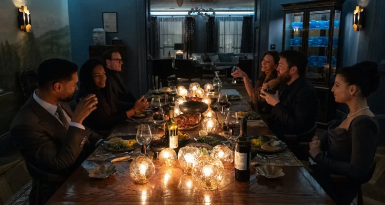 Black Bag – Doppio gioco inizia dalla fine, da una cena con i sospettati in cui George serve il chana masala, arricchito con un narcotico che disinibisce chi lo assume, come fosse la macchina della verità (che sarà di fatto usata in una scena altrettanto enigmatica quasi nel finale). “Non mangiare il chana masala” dice infatti George a Kathryn, e fin da subito sappiamo quale sarà l’alchimia di questa coppia nell’economia gelida della narrazione di Soderbergh. Perché assisteremo a una girandola di messe in scena, sotterfugi, esche e manipolazioni, ma i dialoghi e la prossemica si incastonano alla perfezione e sono rivelatori dei giochi di potere e di forza che coinvolgono tutti i protagonisti di questa storia, anche a loro insaputa. La macchina da presa li asseconda e li enfatizza con angoli di ripresa da interrogare come oracoli per proseguire il viaggio nella mente di un agente di alto livello che supervisiona il Centro nazionale di sicurezza informatica del Regno Unito. Un esempio tra i più riusciti è proprio la lunga scena della cena iniziale in cui George e Katryn sono l’unica coppia seduta l’uno di fronte all’altra, mentre i quattro ospiti hanno posto vicino al rispettivo partner. Si innesca il primo fatale stratagemma di George per arrivare alla verità (che pure, ci fa capire il regista, è impossibile da stabilire fino in fondo): suggerire uno scontro per osservarne la reazione. Tessere trame psicologicamente intricate non per trovare la talpa, ma per far cadere in trappola il malcapitato traditore.