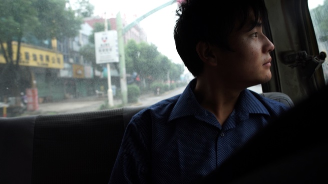 Quasi tutto Ku qian è ambientato in un angolo di Huzhou. Ma l’incipit, sorta di un lungo prologo, contiene alcune delle scene migliori del film. Wang Bing segue la partenza dei tre giovani dallo Yunnan, il viaggio in pullman e treno. Sul treno affollato ovunque, dove al giorno succede la notte e poi un nuovo giorno, le persone dormono sui sedili, per terra, appoggiate alle pareti, qualcuno gioca a carte. Fin da subito, Wang Bing è fra/con loro, comprese figure anonime che saranno lasciate al momento della discesa. E già nelle tappe del viaggio mette in campo una sua precisa scelta estetica: stare vicino, talvolta addosso, a singole persone o gruppi per poi, senza stacco, spostare di poco la macchina da presa e filmare corridoi claustrofobici (di un vagone, dei palazzi) per vedere cosa accade in quegli anfratti e in fondo a essi. Sempre, una questione di spazi dentro i quali il tempo si scioglie.