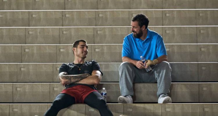 È un film piuttosto “classico” e molto americano. Si divide sostanzialmente in due parti alternate e cucite tra loro: scene di “famiglia” (Sugerman vive con la moglie Teresa – Queen Latifah – e la figlioletta Alex; Bo vive ancora con la madre e ha una bambina piccola) e scene di basket (soprattutto allenamenti e draft combine, ovvero le partite-vetrina per essere scelti dalla NBA). Se le parti famigliari hanno il sapore un po’ zuccheroso e qualche vena melodrammatica da soap opera USA, quelle sportive sono potenti, ritmatissime (anche grazie al montaggio e al soundtrack) e girate magnificamente. Jeremiah Zagar e Adam Sandler (anche co-produttore del film) conoscono evidentemente bene e amano questo sport. L’autore coglie il gesto atletico senza eccedere in mezzi “facili” o scappatoie come il ralenti, anzi registrando semplicemente – da molteplici angolazioni – la rapidità di una schiacchiata a canestro o un palleggio ubriacante, azioni talmente rapide che qualcosa verrà perso dallo spettatore… La macchina da presa può sbucare anche da un cerchione usato come peso. Zagar mette a fuoco la solitudine di un singolo giocatore nello sport di squadra. O meglio, la solitudine di un “fuoriclasse”, per di più straniero in terra straniera e con un passato marchiato da un arresto per aggressione. Bo “the Boa” è letteralmente solo contro tutti, ma in realtà soprattutto solo “contro se stesso” (fatica a vincere le proprie insicurezze mentali): «It’s you against you!» gli grida il coach. Il giocatore spagnolo non ha ancora una squadra e ogni partita è allestita con compagni improvvisati come in ogni vetrina NBA in cui in realtà nessuno gioca “con” te o “per” te. Tutti contro di te. Solo Sugerman crede davvero in Bo e, a parole, lo promuove così: «Come se Scottie Pippen e un lupo avessero avuto un figlio… e Allen Iverson fosse stato il babysitter!».