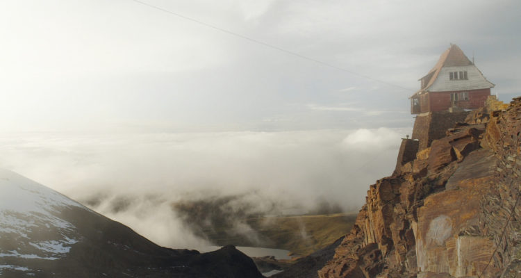 Così, le prime inquadrature – che sembrano provenire da un luogo fantasma, da una terra innevata e nebbiosa nella quale si aggira la sagoma di uno sciatore e dove poi appaiono come dal nulla persone in abiti tradizionali per mettere in scena il rituale di una festa popolare – lasciano quasi subito posto a scene che andranno a comporre il ritratto di un ambiente, di chi lo ha da sempre vissuto e abitato (Samuel) e di chi lo lambisce con una permanenza variabile (le comitive in gita, gli scienziati nel laboratorio di ricerca), aderendo allo stile del documentario che descrive con professionalità una persona, resa personaggio forte, e quella dello spazio che la circonda, denso di memorie per chi, come Samuel, non si è mai allontanato da lì. La Paz è lontana dal monte Chacaltaya, che in anni ormai lontani era sede di una rinomata stazione sciistica. Samuel faceva il manovratore degli skilift, aveva imparato il mestiere dal padre – la cui morte,anch’essa distante nel tempo, è ancora oggi negli occhi del figlio, che lo trovò cadavere, caduto in un burrone vicino alla casa, costruita in cima alle rocce (come un’abitazione uscita da una favola o da un horror). Di quel passato rimangono detriti: la cabina del manovratore, gli attrezzi, l’impianto di salita, la discesa… Tutto è in crisi perché i ghiacciai si stanno ritirando e non nevica più. Su questa traccia principale (la migliore, caratterizzata dalla presenza di Samuel colto nei momenti di solitudine e riflessione) Van Eecke inserisce altri percorsi meno convincenti, inserti per accennare argomenti senza strutturarli (la miniera, le elezioni presidenziali, lo scienziato che raccoglie campioni d’aria…). Alla fine, ricollegandosi all’inizio, riecco, non più nella nebbia ma nel sole, i pali, i fili, la ruota dell’impianto di sci. Oggetti con cui ora giocare, divertirsi, mimando il volo di un uccello, dicendo anche con quei gesti l’impossibilità di staccarsi, nonostante tutto, da quel rifugio al confine tra terra e cielo. E nuvole.