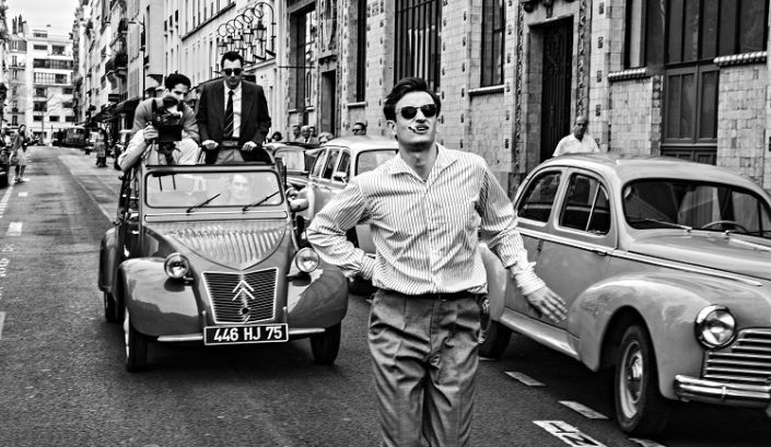 Smitizzare il gesto tecnico in favore della flagranza della vita è la posizione di partenza del giovin Godard e Linklater la cavalca sino in fondo ribaltandola in un film che invece cerca la precisione nel riprodurre la casualità del gesto godardiano. Linklater, in verità, gioca con la verità dell’aneddotica proprio mentre riproduce fedelmente le scene, le scenografie, i gesti, le situazioni: mostra le scene celebri nel loro farsi, dialoghi a parte, ché si filmava senza presa diretta… Jean-Paul Belmondo è l’incoscienza che si fa fiducia per amicizia, Jean Seberg è la coscienza della star che si lamenta come una diva, Beauregard produce sudando freddo e venendo alle mani con l’amico Jean-Luc, Coutard filma eseguendo l’assurda metodologia godardiana, Rissient sostiene il set… Ogni cosa è a suo posto e, se Godard simpatizza con il proprio ruolo con il sorriseto un po’ malin sotto gli occhiali da sole, l’apologetica della creazione del capolavoro arriva felicemente ai nostri occhi. Il solito vecchio sogno di Linklater di mettere la vita nel riquadro dello schermo…