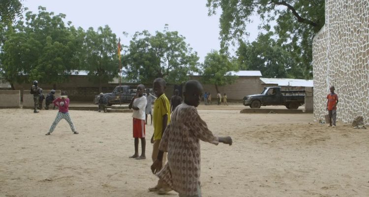Boko Haram è il convitato di pietra dei quadri di vita colti da Cyrielle Raingou nel Nord del Camerun, sul confine con la Nigeria (terra che tra l’altro le appartiene), in questo suo film che ha vinto il Tiger Award a Rotterdam 2023: Le spectre de Boko Haram è un documentario con approccio umanistico, che scavalca la denuncia della drammatica situazione che racconta, per offrire piuttosto un ritratto di quotidianità, nelle cui ore e minuti si palesa, ben tangibile, lo spettro – appunto – della presenza di Boko Haram, l’organizzazione terroristica jihadista che dalla fine del 2014 semina il terrore tra la popolazione del nord Camerun, con frequenti incursioni dalle montagne sul confine nigeriano. Cyrielle Raingou sceglie il punto di osservazione di Kolofata, città che ha subito ripetuti attacchi dei jihadisti e che, presidiata dall’esercito camerunense, mantiene un ritmo di quotidianità costante. In lontananza risuonano colpi di mitraglia sui quali si ferma silenziosa e spaventata l’attesa della gente per strada, mentre la narrazione del film transita attraverso la storia di tre ragazzini: Falta, che vive con la madre nel doloroso ricordo della morte del padre per mano di un kamikaze jihadista, e poi Mohamad e suo fratello minore Ibahim, profughi dalla Nigeria, fuggiti dal campo jihadista di Mubi (dove la madre li crede morti, annegati nel fiume) e accolti dai soldati a Kolofata.