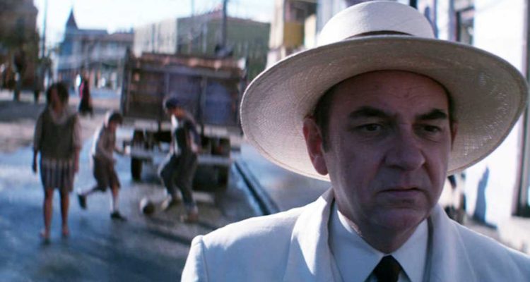 o personaggio, tenacemente fisico (non a caso Larraín lo affida al comico Luis Gnecco) e tenacemente onirico, sempre sopra le righe di un discorso che travalica il senso urgente del contesto. E così i colori si raggrumano in tonalità seppia e malva (viene in mente il verde bottiglia di Joyce), i piani sequenza diventano parte di una grammatica quasi morbosa, proprio come lo sguardo dell’ispettore interpretato da Gael García Bernal. Sua la voce fuori campo che conduce il racconto, suo lo spaesamento di una ricerca che lo lascia sempre orfano della preda che per otto mesi cerca di raggiungere invano. Lui, così desideroso di un padre da inventarselo per avere un’identità, cade vittima prima di tutto del suo stesso straniamento. Nemesi letteraria del suo rivale e vittima di una fascinazione che conduce il film su un piano di geniale astrazione, l’unico modo possibile per restituire la figura complessa dell’uomo Neruda, caleidoscopio di luci e ombre e portatore di un punto di vista impossibile da sintetizzare. Un film che è un poliziesco (come le storie amate da Neruda) nei panni del road movie, indagine selvaggia quando devia verso la deriva esistenziale impossibile da circoscrivere. Perché impossibile è anche trovare una sola definizione per la personalità del poeta. “Nessuno rimane esattamente com’era all’inizio, né il cacciatore, né la preda. Abbiamo inventato un mondo, esattamente come Neruda ha inventato il suo. Il film che abbiamo fatto è più un film ‘nerudiano’ che un film su Neruda; o forse è entrambe le cose. Abbiamo creato un romanzo che ci avrebbe fatto piacere che Neruda leggesse”, dice Larraín.