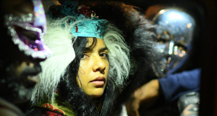 Notte in Kerala, sostanzialmente un incubo on the road perso in un detour infinito e senza vie d’uscita. Nelle traiettorie identitarie dell’India schiantate tra sud e nord, il buio della notte dovrebbe nascondere la fuga a settentrione di due amanti: Durga, una migrante che proviene dal nord, e Kabeer, giovane keralese, stretti nel disperato tentativo di trovare un passaggio per raggiungere la stazione. Vettore narrativo elementare e chiaramente simbolico, su cui il giovane regista keralese Sanal Kumar Sasidharan costruisce Sexy Durga (in Concorso a Pesaro 53), trip sospeso tra il furore allucinato della ritualità induista e la fuga senza uscita dei due amanti persi nella notte. All’orizzonte i bagliori della grande festa religiosa in onore della dea Kali sembrano proiettare nel buio che inghiotte i due fuggitivi l’ira della Dea Madre Durga, mentre gli adepti camminano sulla brace ardente del falò o dondolano in estasi mistica, appesi per le carni ai ganci di un carro in processione. L’altra Durga, quella in carne e ossa, in fuga abbracciata al suo giovane amante è invece tutt’altro che irata: trema come una foglia nel retro del furgoncino che li ha caricati a bordo, guidato da un paio di sbandati, forse trafficanti, forse solo contadinotti un po’ alticci, dall’aria sospetta e dai modi certamente poco raccomandabili, ma tutto sommato di buon cuore, decisi a non lasciare i due fuggiaschi soli nella notte pericolosa. Sasidharan parte dalla sovversione letterale della realtà, il mondo sottosopra nella soggettiva allucinata dei fachiri sospesi al sacro rito, e costruisce un film che è una sorta di imbuto di oscurità in cui spinge e filtra l’intera realtà sociale e individuale di questo scorcio d’India notturno.