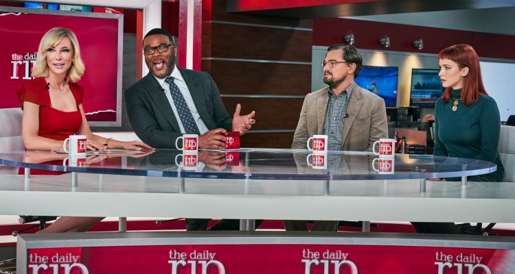 Don’t Look Up è un distaster movie che fa ridere e fa paura e provoca angoscia: davvero! Perché è un disaster movie tragicamente spostato dalla sfera del dramma a quella della commedia, dove la catastrofe imminente e la conseguente epifania morale non innesca la catarsi nei protagonisti, ma scatena l’irrazionalità compulsiva del sistema nel quale siamo calati. Nel film c’è una cometa di 9 chilometri di diametro che è diretta giusto contro la Terra e che provocherà l’estinzione di ogni specie vivente sul pianeta: questo è un dato di fatto scientifico, appurato da un astronomo del Michigan (Leonardo DiCaprio) e da una sua ricercatrice (Jennifer Lawrence), portato a conoscenza del Presidente degli Stati Uniti d’America (Meryl Streep), che prima lo sminuisce poi lo cavalca, perché è alle prese con microscandali e con giochi da midterm election. Gli scienziati non si capacitano e allora provano a denunciare il fatto ai giornali, arrivano in tv nello show del mattino di una piacente anchorwoman (Cate Blanchett), ma l’informazione, per quanto cruciale, gira a vuoto nel circo mediatico globale. E anche quando viene infine presa sul serio, innesca dinamiche irrazionali di negazionismi e fanatismi opposti, distinguo e ottimismi, giochi di interesse e di potere: non manca nemmeno il guru del device high tech con algoritmo magico in stile Steve Jobs (un impagabile Mark Rylance)… Togliete dal plot la cometa gigante e mettete al suo posto il riscaldamento globale e il disaster movie diventa una sorta di drammatico documentario in presa diretta sulla stolidità contemporanea.