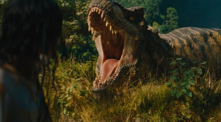 A tutto ciò si affianca un discorso devozionale nei confronti del cinema di Spielberg (ovviamente in veste di produttore esecutivo) e quindi una riflessione sul cinema che parallelamente contamina il senso del fare blockbuster mostruosi, oggi. Altrimenti che senso avrebbe la lunga sequenza dell’attacco del Mosasauro se non fosse leggibile come un omaggio a Lo squalo nel suo cinquantesimo anniversario? Oppure, l’estenuante sfida contro il tempo per aggiudicarsi l’uovo del Quetzalcoatlus per analogia, non guarda a Indiana Jones? E il (bel) duello nel fiume con il T-Rex non è degno della suspense più dura e pura, autentico ingranaggio che svela la natura delle illusioni del cinema? Il film sembra domandarsi continuamente questo: è vero che, come accade agli umani nel film, anche negli spettatori del cinema di oggi i dinosauri non destano più meraviglia? Ecco, Jurassic World: La rinascita, per quanto ruffiano possa rivelarsi, è da guardare così, senza troppe pretese ma con gli occhi di chi è disposto a stupirsi ancora una volta, cercando da qualche parte un motivo per immaginare, credere, resistere e lottare.