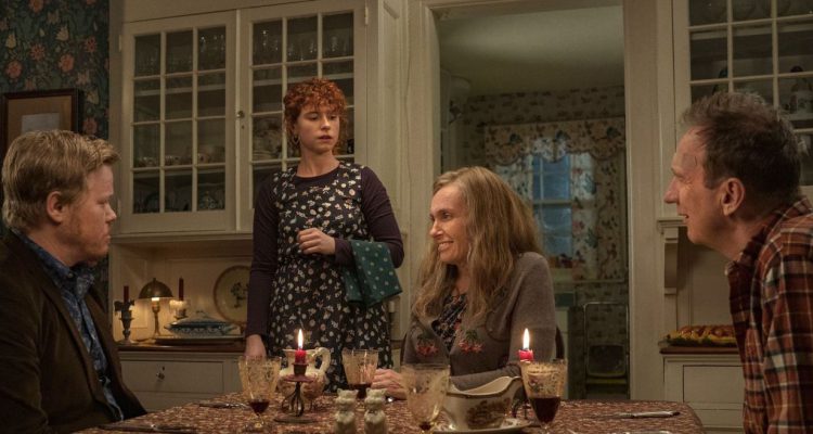 La narrazione segue un impianto di tipo teatrale in tre atti: viaggio di andata, permanenza nella casa dei genitori di Jake, viaggio di ritorno. Ma c’è qualcosa che da subito non torna. Non torna in Lucy, Louisa, Lucia, la cui voce fuori campo ci esterna immediatamente la non convinzione ad affrontare quel viaggio e a portare avanti la relazione. Lei e Jake parlano di Wordsworth, di poesia, di musical, dei treni di Mussolini, di virus, di Una moglie di John Cassavetes. Lui è premuroso, il classico bravo ragazzo, si interessa a lei, al suo lavoro, ai suoi pensieri, anche quelli fuori campo. Una volta arrivati alla fattoria dei genitori – interpretati da Toni Collette e David Thewlis – tutto diventa sempre più bizzarro, assurdo, surreale, dilatato, sospeso, a tratti inquietante. Anche qui qualcosa non torna. Le scene vanno a rilento, più a lungo del previsto, i dialoghi si sovrappongono a monologhi interiori, i genitori invecchiano, poi ringiovaniscono, il cane c’è, il cane esiste solo in fotografia, Lucy giura di vedere sé stessa in una delle foto in salotto, ma in realtà si tratta di Jake. Qual è la realtà? In fondo, il pensiero è più reale della realtà stessa, viene detto nel film. Quale di queste vite è reale? Quale di questi personaggi è reale? Quale invece è proiezione dell’Io del protagonista? Chi è il vero protagonista? Lucy, Louisa, o Lucia? O forse Jake? O il vecchio bidello del liceo di provincia che vede scorrere le vite degli studenti (la sua?) davanti agli occhi come un musical? Kaufman non armonizza i personaggi in singole inquadrature d’insieme ma li divide, li contrappone, li scollega, e a noi, come a loro, risulta impossibile qualsiasi tipo di distensione nella visione. Le metamorfosi che subiscono sono forse – come ne Il ladro di orchidee (2002) – un commento sul processo di sceneggiatura e sul modo in cui le identità dei personaggi vengono riviste mentre lo scrittore ne abbozza e delinea i tratti? Sto pensando di finirla qui attira costantemente l’attenzione sull’artificio scrittorio ma risulta completamente sincero nella sua preoccupazione per l’invecchiamento, la malattia, il dolore, il rimpianto e le connessioni che creiamo con l’arte e le altre persone. Qualunque sia l’universo in cui si trovino.