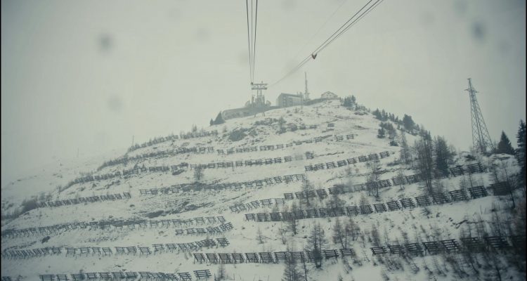 Montanario – Upon that Mountain è la seconda regia di Mastropietro dopo Storia dal Qui – sul ritorno ad Ascoli Satriano, paese natale dei genitori, nel 2018 al Festival di Popoli. Produttrice di Ninì di Gigi Giustiniani e Raffaele Rezzonico (Genziana d’oro CAI al Trento Film Festival 2015) e cosceneggiatrice, con Daniele Ietri Pitton, di Sagre balere di Alessandro Stevanon (road movie tra le sagre paesane di ballo in Emilia Romagna, a Visions du Réel nel 2017), realizzati dalla valdostana La Fournaise. Sospeso tra autentica meraviglia per la natura e per il silenzio e osservazione di meccanismi di consumo perfettamente testati, di precisione (esattamente come il sistema di cavi e motori dello SkyWay) Montanario a tratti potrebbe essere scambiato per footage di Forza maggiore di Ruben Östlund. Con un senso di stupore e attesa emozionanti, si interroga di continuo sul significato dell’esserci, di un’esperienza e del riverberare nella sua rappresentazione.