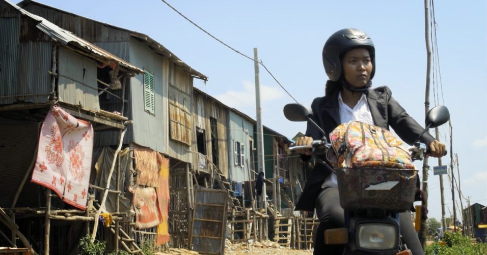 Ha sempre la testa tra le nuvole Kanitha. Vive a Phnom Penh, in Cambogia, e non riesce a tenersi stretto un lavoro (ogni volta è puntualmente licenziata), pronta a sognare ad occhi aperti e vedersi protagonista di qualche video musicale per distaccarsi da una realtà che le sta stretta. Il racconto procede infatti in gran parte per accostamenti e sovrapposizioni di momenti quotidiani a sequenze oniriche, un’alternanza che non provoca mai contrasti netti e che soprattutto nella seconda metà del film si contamina anche con l’inafferrabilità della memoria, quando i ricordi di un’infanzia lontana si fanno urgenti e significativi. Nonostante la leggerezza con cui affronta la vita, Kanitha deve fare i conti con la malattia di un padre prossimo alla morte di cui conserva i preziosi ricordi dei momenti trascorsi insieme: riemergono allora dal passato immagini e visioni (è l’acqua a dominare, legata ad un ricordo in particolare) che si mescolano al resto del racconto in un flusso visivo surreale e dinamico. È con il montaggio che Soek riesce a conferire enfasi e fascino a tutto questo processo di contaminazione tra le varie dimensioni narrative della storia, riducendolo alle soluzioni essenziali dello stacco netto e delle dissolvenze morbide e ipnotiche capaci di restituire allo spettatore il turbinio emotivo della protagonista, in bilico fra l’alienazione dell’immaginazione e l’attaccamento alla famiglia. Turn left turn right, come pare indicare lo stesso titolo, sembra infatti essere al bivio tra due strade che potrebbero sembrare contraddittorie, ma in realtà coerenti con i suoi personaggi. Se Kanitha non riesce a fare a meno di allontanarsi con la mente dal suo mondo, è anche vero che esprime con esso un legame profondo che si realizza prima di tutto negli affetti familiari, ma anche nella volontà di godere della bellezza della terra cambogiana, da ricercare nelle gite in barca lontano dal caos urbano o nei balli immaginati fra le antiche e iconiche rovine di Angkor. La macchina da presa non manca di contemplare i magnifici paesaggi inserendoli anche tra le fantasie di Kanitha, come a suggerirci la necessità di un ritorno alle radici di un’identità culturale, ma con lo sguardo rivolto in avanti.