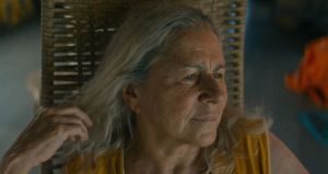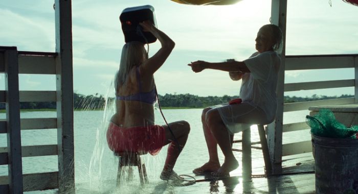 Il suo destino è la Colonia dove sono destinati gli anziani da questo regime, onnipresente e oppressivo, soprattutto nei loro confronti con l’ipocrita giustificazione di un riposo dopo anni di lavoro e di un superficiale provvedere ai loro bisogni. Ma Tereza, nonostante l’amore per la figlia, che quest’ultima non ricambia, ha altre aspirazioni e il suo viaggio diventa occasione per una differente dimensione della propria vita. Il sentiero azzurro di Tereza è il fiume che attraversa l’impenetrabile Amazzonia. Cadu (Rodrigo Santoro) un losco capitano di una barca non sua, conduce l’anziana donna verso il desiderato in aereo. Cadu però conosce la magia dei luoghi e le proprietà visionarie della bava della lumaca azzurra, che sfrutterà ancora per liberarsi da ogni catena, insieme a Roberta (Miriam Socarras) sua nuova amica e compagna, veditrice di improbabili Bibbie elettroniche. Il film di Mascaro è un celato inno ad una pretesa e legittima libertà, è la storia di una rivolta caparbia e silenziosa di Tereza, che si barcamena tra divieti e impedimenti, eludendo i primi e superando i secondi contro ogni previsione. Il fascino del film risiede in questa tensione verso la libertà dai vincoli, dalle regole della vita, nel desiderio che matura e si fa più solido in quella terza età che sembra rinvigorire la protagonista, nell’immagine di un Brasile che diventa sempre più pericoloso, ma anche più magico e sconosciuto. Un fascino discreto, non troppo evidente in quella ricerca di una stabilità perduta per l’anziana Tereza: quel traguardo che costituisca la chiusura di una ferita apertasi con la fine del lavoro, in quella prospettiva di libertà limitata da questo futuribile governo-controllore con un occhio da grande fratello, che Mascaro abilmente e sottilmente mette in scena con le sue gabbie per anziani e la tutela cui devono sottostare superata l’età produttiva.