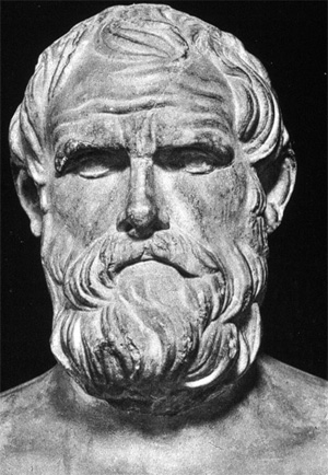 La domanda che dunque ci sorge spontanea, oggi come allora, è la stessa: come è possibile che due individui così loschi, Cleone nella Grecia del passato e Trump nell’America del presente, siano riusciti ad affermarsi ai vertici di due teste di serie come Atene e gli Stati Uniti? La risposta, ancora una volta, è la medesima: in entrambi i casi ha vinto la rabbia e l’insoddisfazione del popolo. Particolarmente curioso e significativo per la comprensione delle dinamiche del potere e della manipolazione è un fatto biografico relativo a Cleone: prima di salire alla ribalta al posto del defunto Pericle, il politico era un conciatore di pelli, materiale allora indispensabile per gli eserciti greci. Così, mentre il commediografo Aristofane (qui sotto il suo busto) gli dava