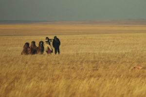 Un cameracar nell’aurora della steppa mongola. I fari del fuoristrada tagliano il buio della notte e l’erba secca mentre i primi bagliori del giorno tinteggiano l’orizzonte, la polvere di una mandria di...